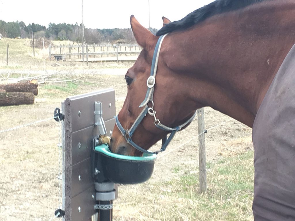 När hästar hålls i hage hela dygnet eller stora delar av dygnet ska de ha tillgång till vatten av bra kvalitet, samma som du själv dricker. Tillgång till vatten är extra viktigt under sommarperioden då bland annat värme får hästen att vilja dricka mer. Men även under andra perioder av året bör hästen ha vatten i hagen. Om din häst inte har fri tillgång till vatten ska den ha möjlighet att dricka sig otörstig minst två gånger om dagen enligt Jordbruksverkets föreskrifter. Hur mycket vatten en häst dricker beror på dess storlek. Man brukar räkna med minst fem liter per 100 kg kroppsvikt för en häst i vila. Om den arbetas ökar behovet.