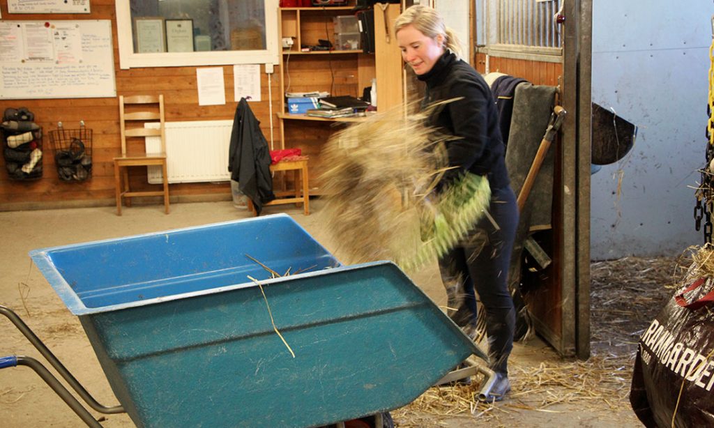 Efter utsläppet är det dags att mocka rent i alla boxarna och därefter sopa hela stallet. Vid mockning blir det många kärror gödsel som dagligen körs ut från ett stall. När Veronica börjar med den åttonde boxen börjar det kännas i axlar och rygg och hon funderar på om det finns andra sätt att hålla häst, kanske någon form av lösdrift, så man slipper mocka så mycket för hand. Men gödsel lär ju hästarna producera hur dom än hålls. Hon har hört att varje häst bajsar ur sig flera ton per år.