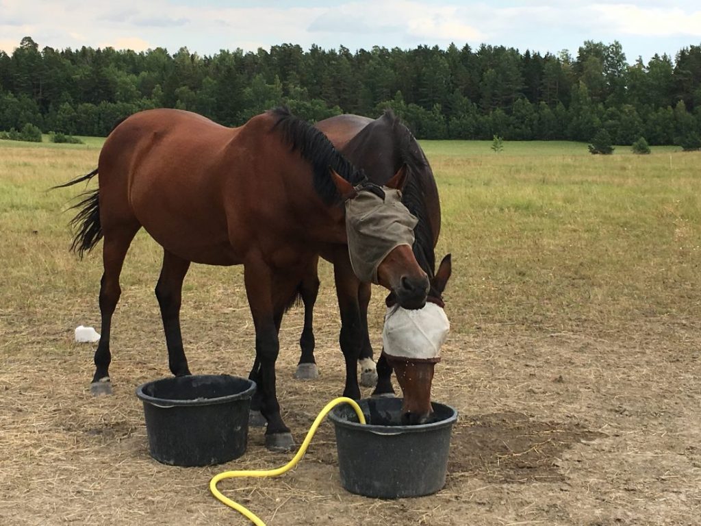 Det är också viktigt att se till att hästarna har vatten i tillräcklig mängd i beteshagen. Vattnet ska vara av samma kvalitet som ditt eget dricksvatten, ett vattenfyllt dike duger inte till hästar. Förutom att regelbundet fylla på det kärl som används måste du också se till att det inte finns smuts och växtrester samlade i vattnet. Då behöver man tömma ur vattnet och göra rent innan nästa påfyllning. På betet behövs även en saltsten som hästarna kan slicka på när de vill.