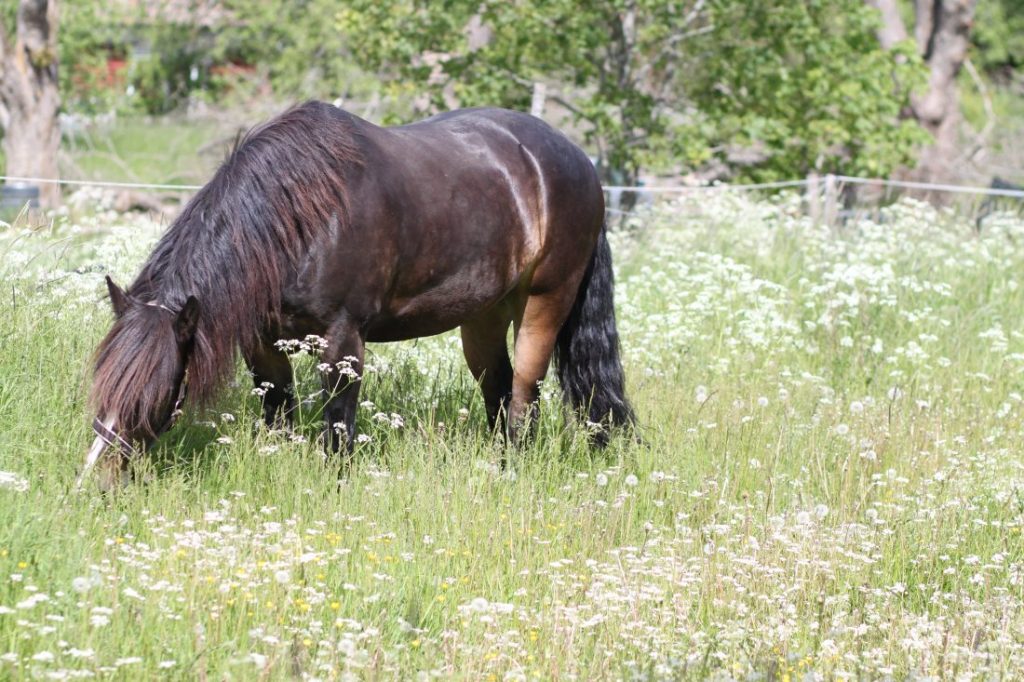 Gården där Anna har sin häst ligger några kilometer utanför samhället. Runt om finns flera gårdar som har både åkermark och skog. En av gårdarna har några fina beteshagar där hästägarna i stallet kan släppa hästarna på bete under sommarperioden. För de flesta hästarna är betet en skön period där de kan få strosa runt hela dygnet och söka föda. Att beta är ju otroligt viktigt för hästar, ett medfött beteende, har Anna förstått.